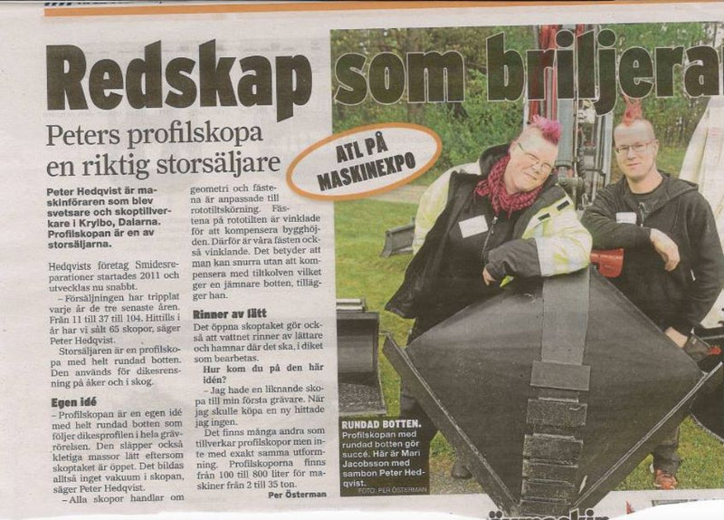 Peter Hedqvist tillverkar skräddarsydda grävmaskinsskopor och redskap i Krylbo sedan 2009. Varje produkt byggs för just din maskin.